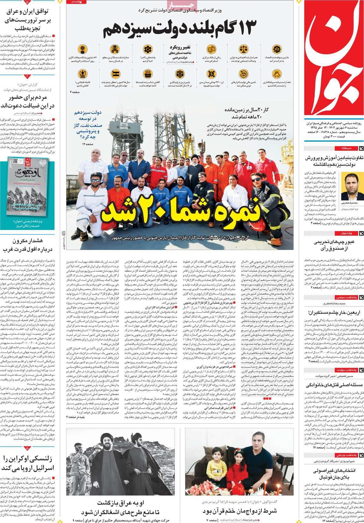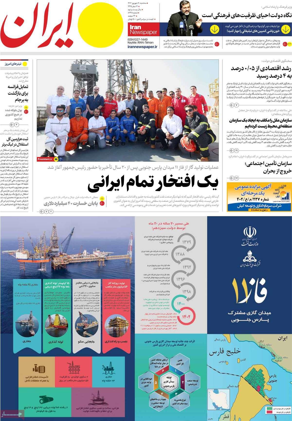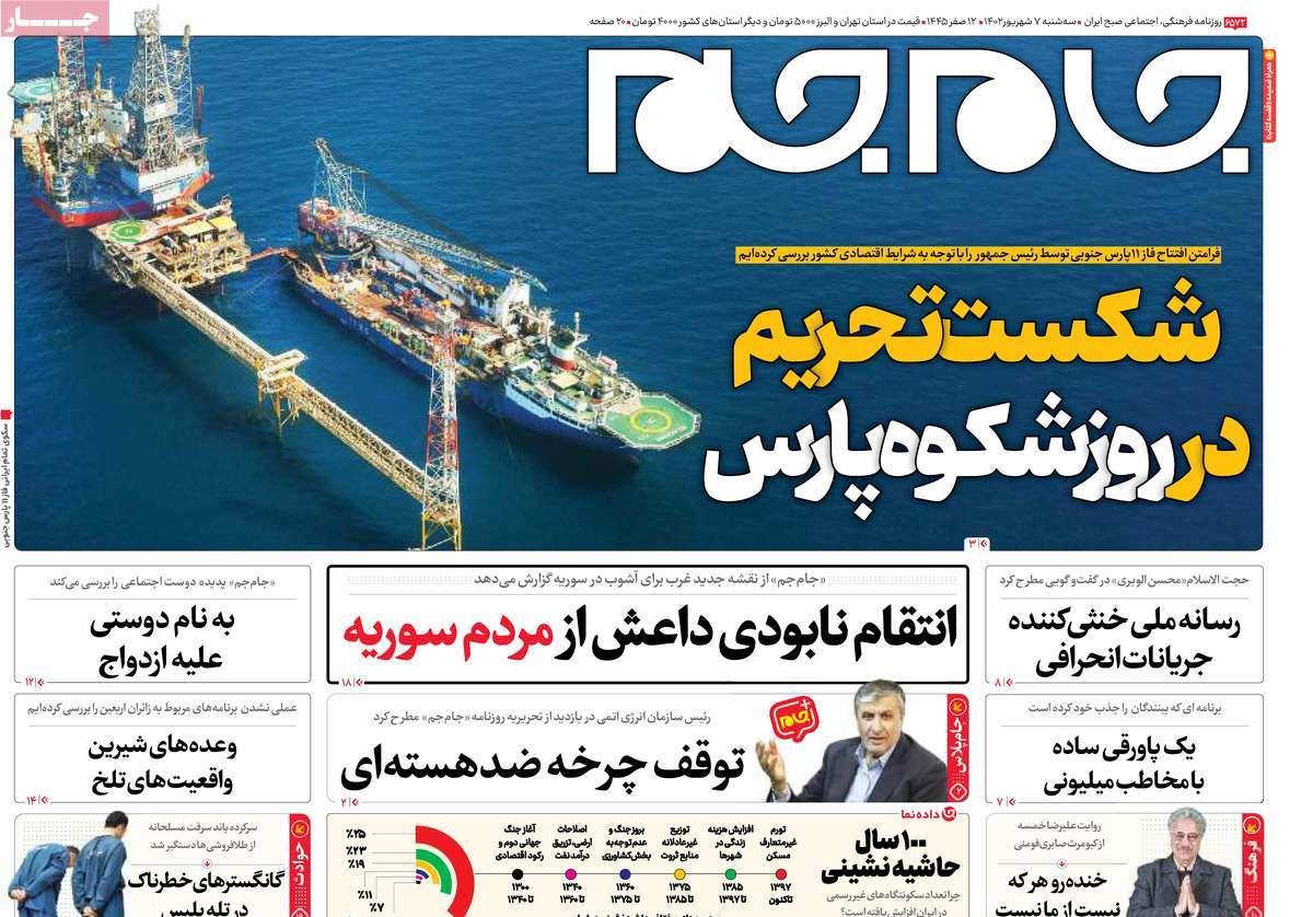 افتتاح ایرانیترین فاز پارس جنوبی بدون برجام، بدون توتال، ورود به پیمانها و پایان یکجانبهگراییها، 13 گام بلند دولت سیزدهم، از جمله موضوعات مورد توجه روزنامههای سهشنبه 7 شهریور است.