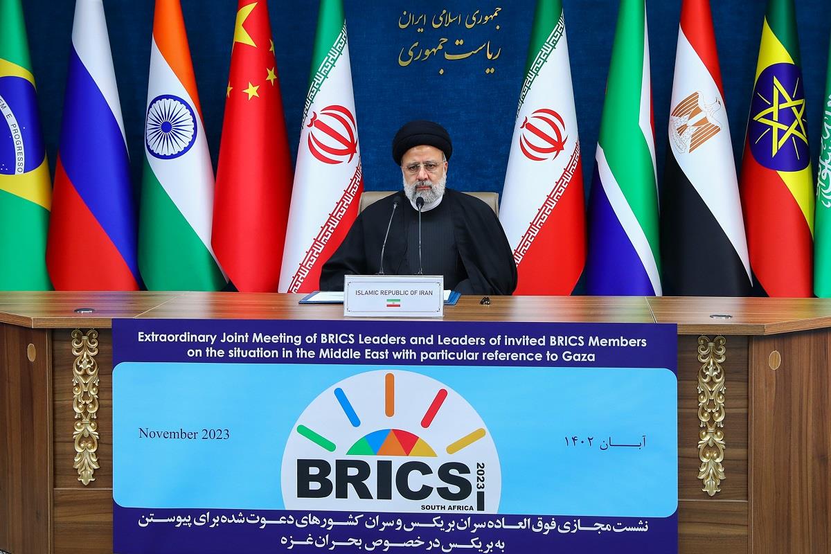 نشست وبیناری سران بریکس، عصر سه شنبه 29 آبان 1402 با حضور سید ابراهیم رئیسی به صورت فوقالعاده برگزار شد. این نشست به میزبانی آفریقای جنوبی به عنوان رئیس دورهای بریکس برگزار شد. سران بریکس و اعضای بریکس پلاس در این نشست مواضع خود را پیرامون حمایت از مردم مظلوم غزه بیان کردند.