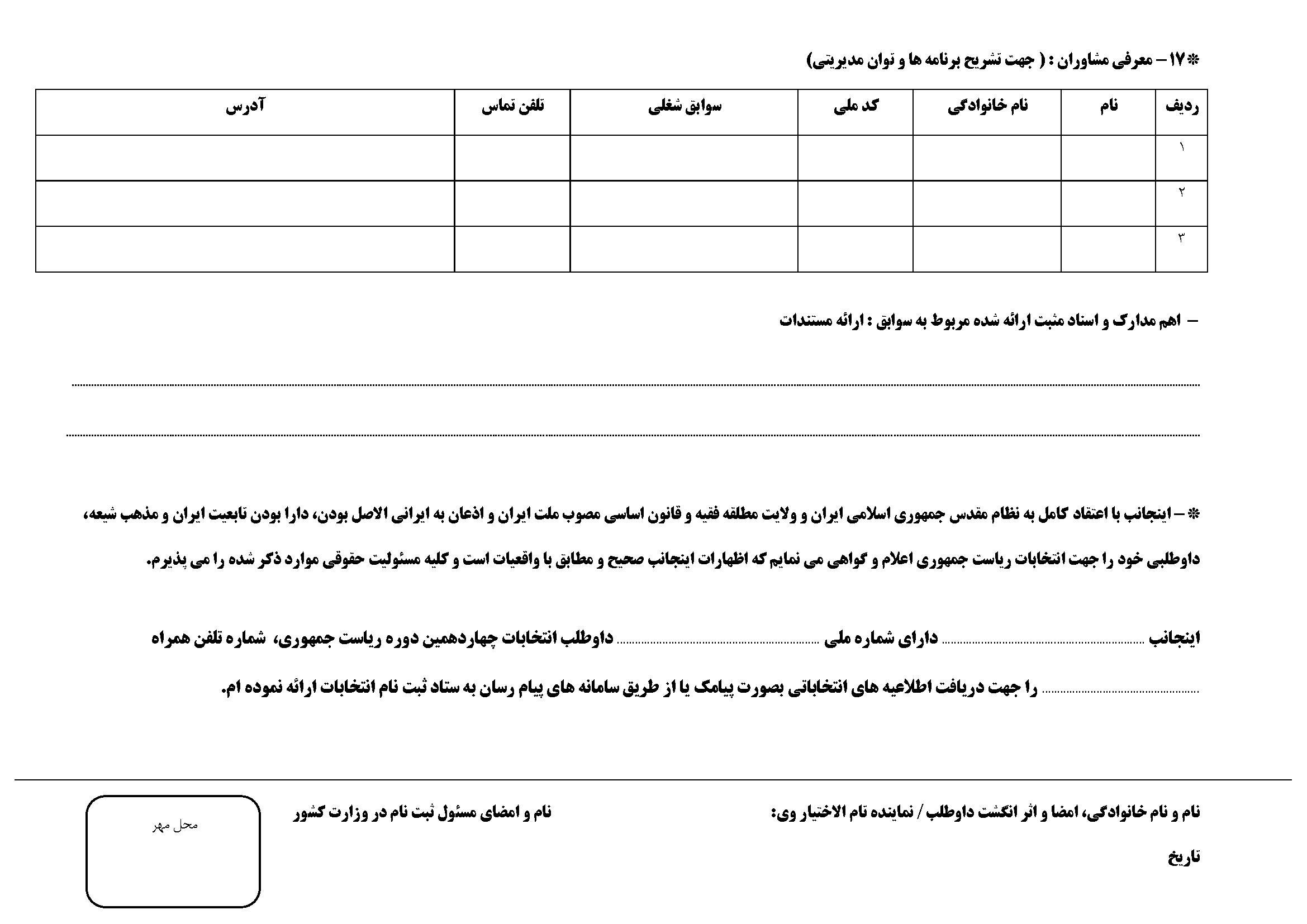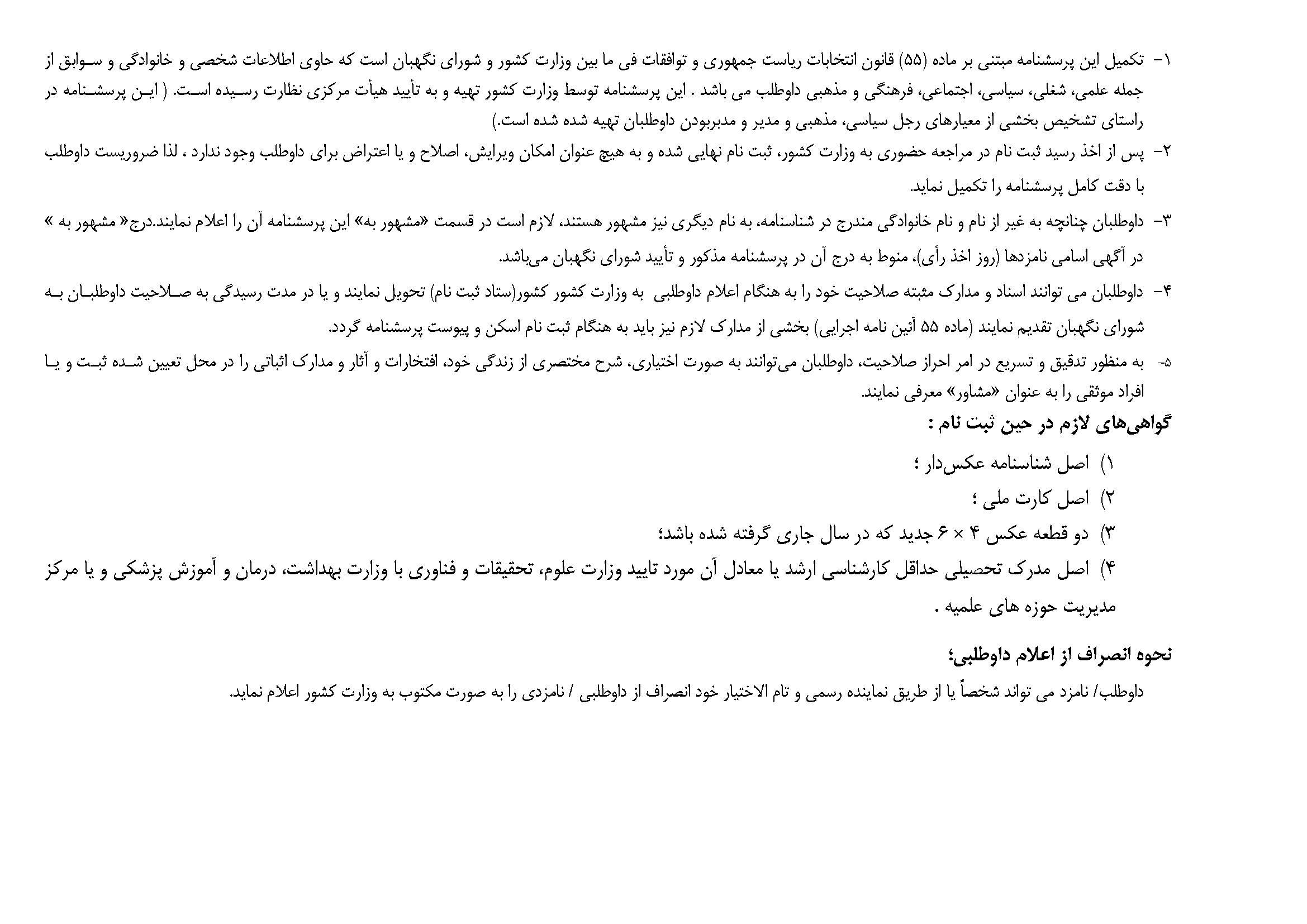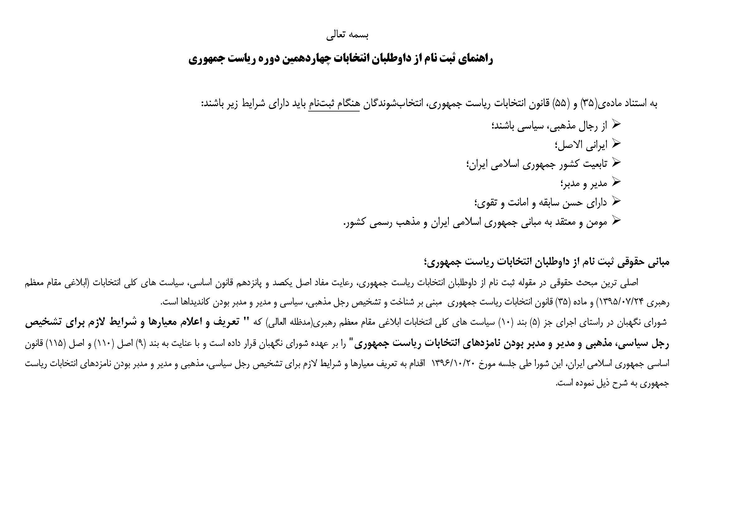 ستاد انتخابات کشور برای تسهیل در امور اجرایی ثبتنام و آگاهی داوطلبان قبل از حضور در محل ثبتنام بهاستناد ماده 35 و 55 قانون انتخابات این راهنما را به آگاهی عموم میرساند.