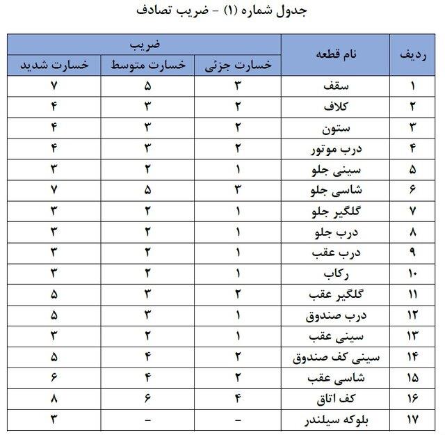 دستورالعمل نحوه محاسبه خسارت کسر قیمت وسیله نقلیه