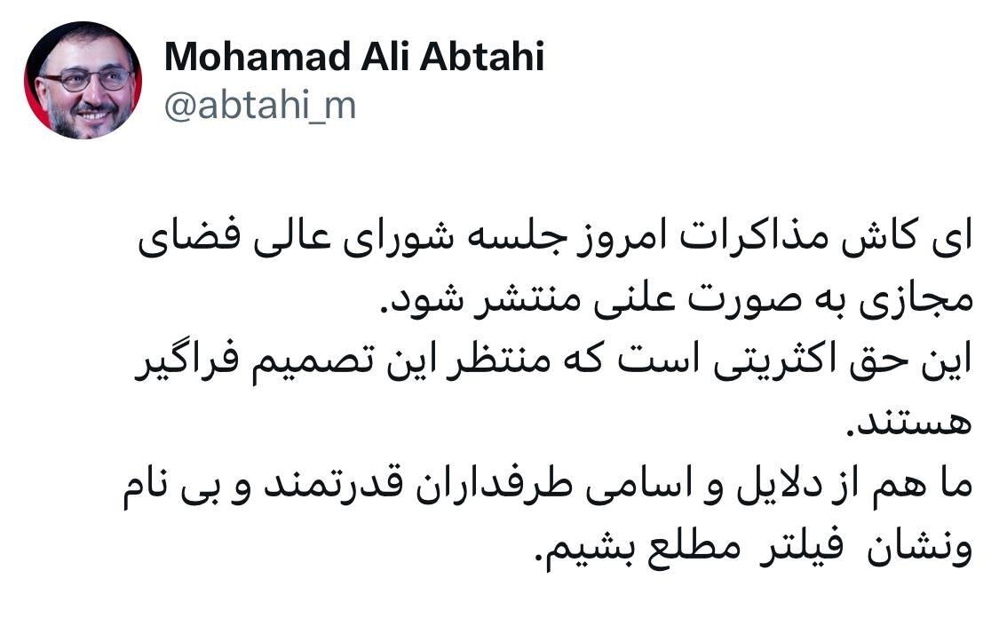 در همین راستا، محمدعلی ابطحی فعال سیاسی اصلاح طلب، در شبکه اجتماعی ایکس نوشت: